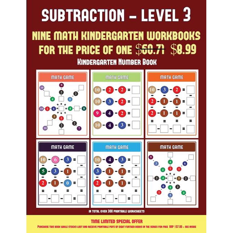 Kindergarten Number Book Kindergarten Number Book Kindergarten Subtraction Taking Away Level 3 30 Full Color Preschool Kindergarten Subtraction Worksheets Includes 8 Printable Kindergarten Pdf Books Worth 60 71 Series 12 Paperback
